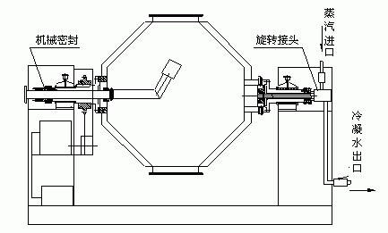 - 在動力驅動下,罐體作緩慢旋轉,罐內(nèi)物料不斷地混合,從而達到強化干燥的目的。