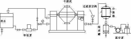 - 物料處于真空狀態(tài),蒸汽壓下降使物料表面的水份(溶劑)達到飽和狀態(tài)而蒸發(fā)了,并由真空泵及時排出回收。物料內(nèi)部的水份(溶劑 )不斷地向表面滲透、蒸發(fā)、排出,三個過程不斷進行,物料在很短時間內(nèi)達到干燥目的。